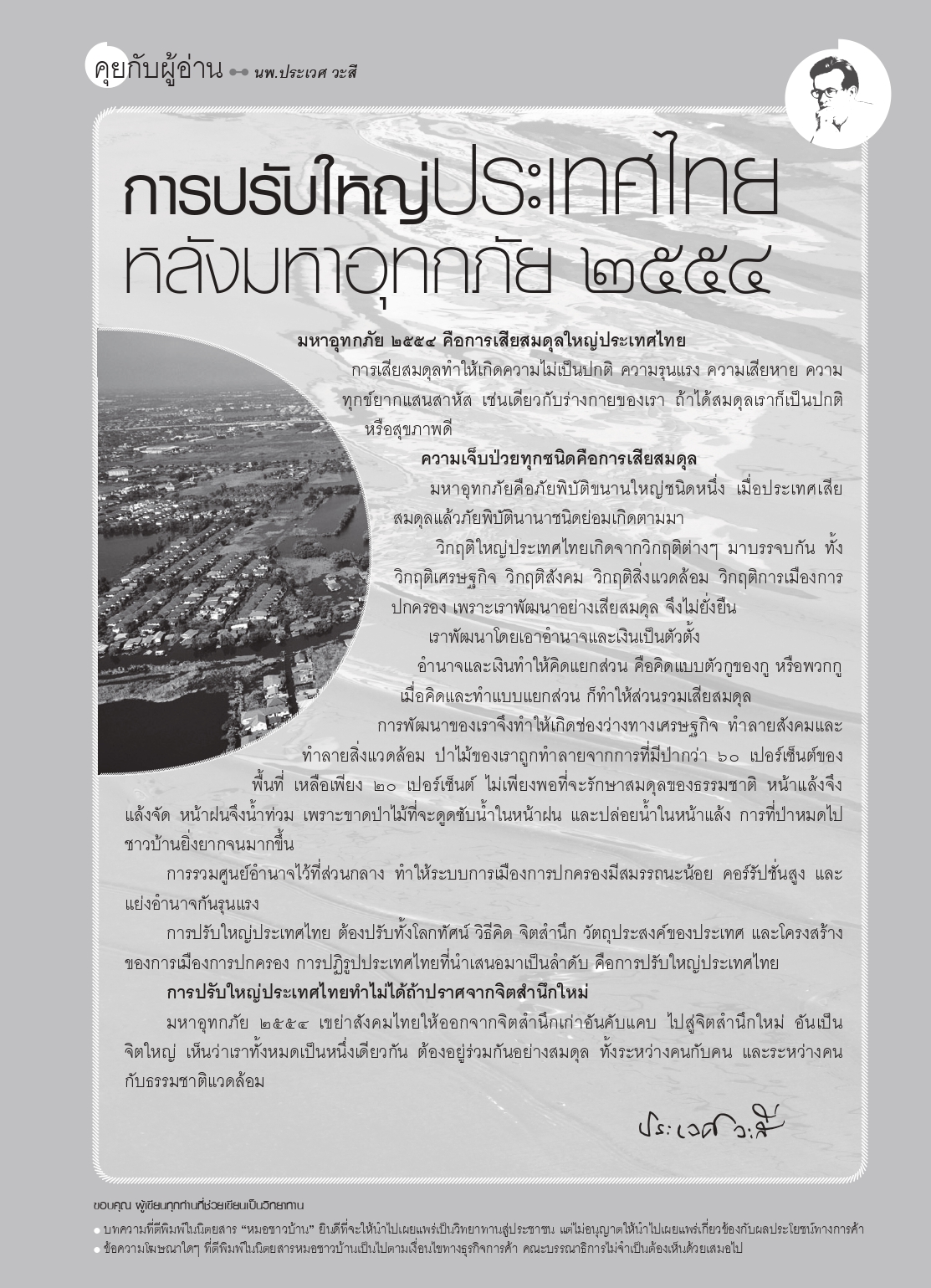คุยกับผู้อ่าน : การปรับใหญ่ประเทศไทย หลังมหาอุทกภัย2554 (นิตยสารหมอชาวบ้าน ฉบับที่ 392 เดือนธันวาคม พ.ศ. 2554)