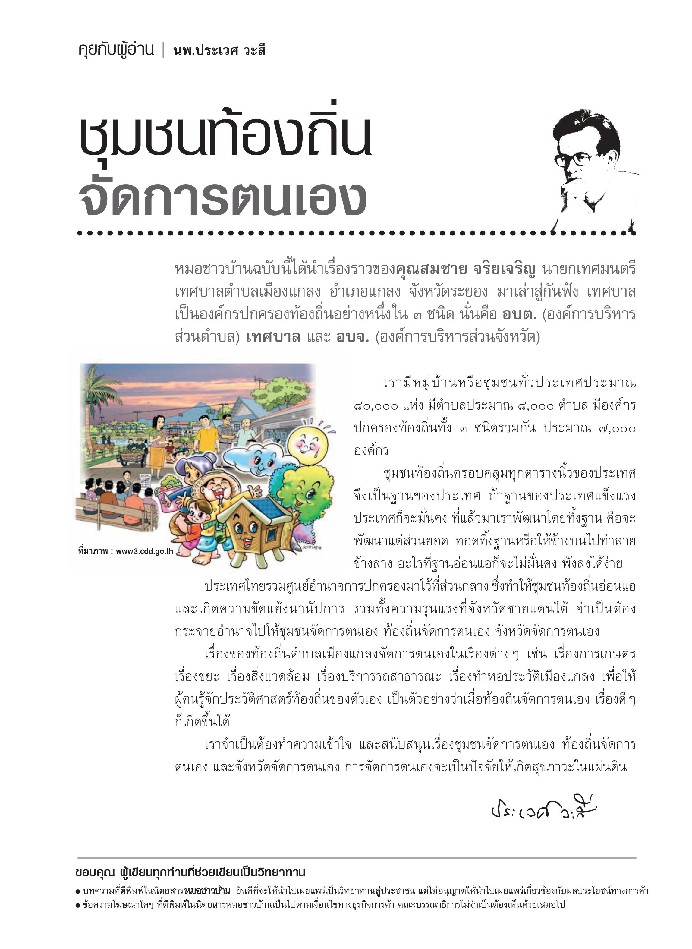 คุยกับผู้อ่าน : ชุมชนท้องถิ่น จัดการตนเอง (นิตยสารหมอชาวบ้าน พ.ศ.2556 )