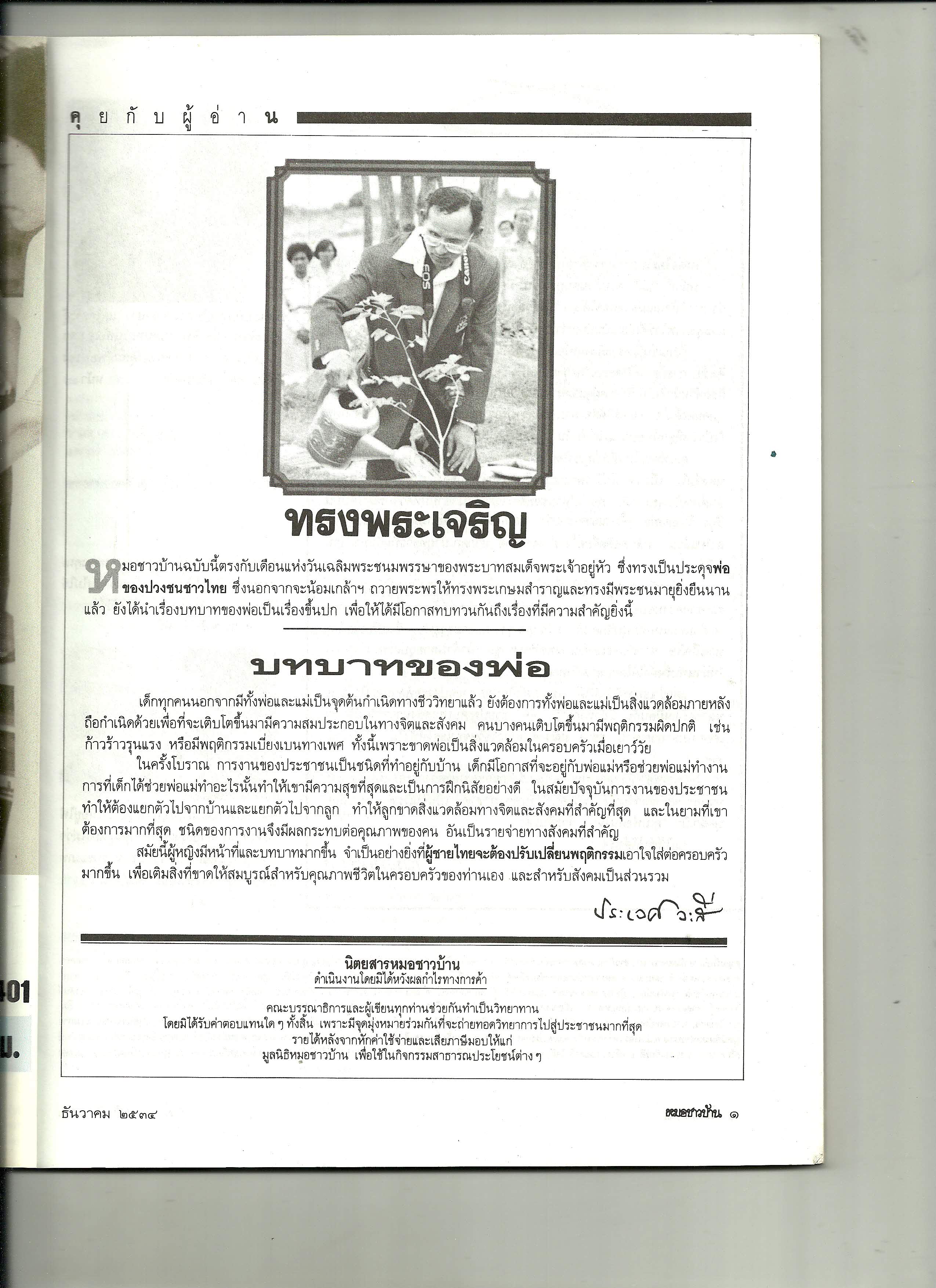 คุยกับผู้อ่าน : ทรงพระเจริญ บทบาทของพ่อ (นิตยสารหมอชาวบ้าน ฉบับที่ 152 เดือนธันวาคม พ.ศ. 2534)