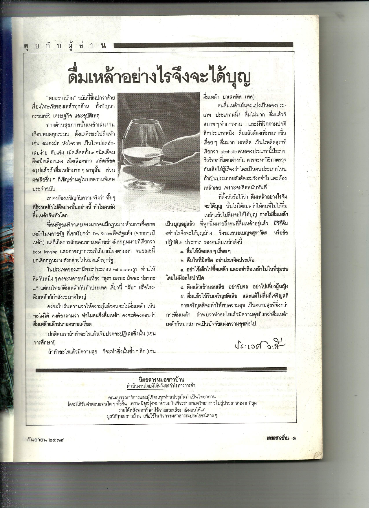 คุยกับผู้อ่าน : ดื่มเหล้าอย่างไรจึงจะได้บุญ (นิตยสารหมอชาวบ้าน ฉบับที่ 149 เดือนกันยายน พ.ศ. 2534)