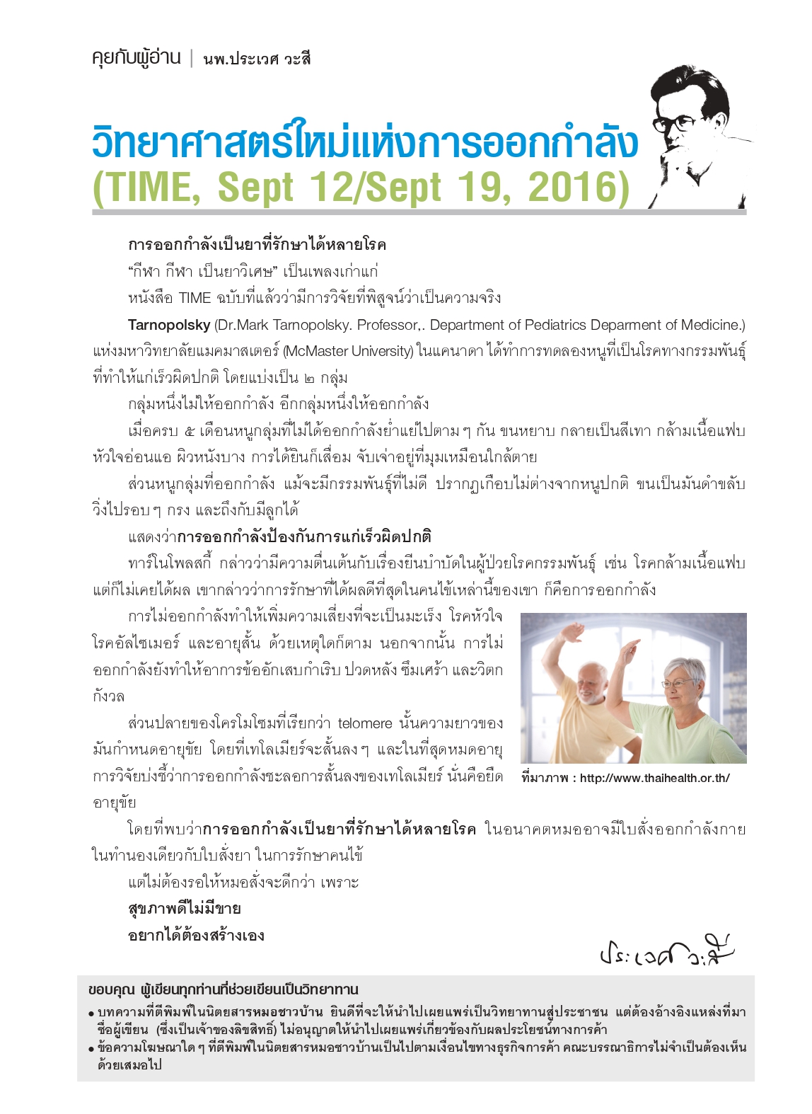 คุยกับผู้อ่าน : วิทยาศาสตร์ใหม่แห่งการออกกําลัง (นิตยสารหมอชาวบ้าน เดือนกันยายน พ.ศ. 2559)