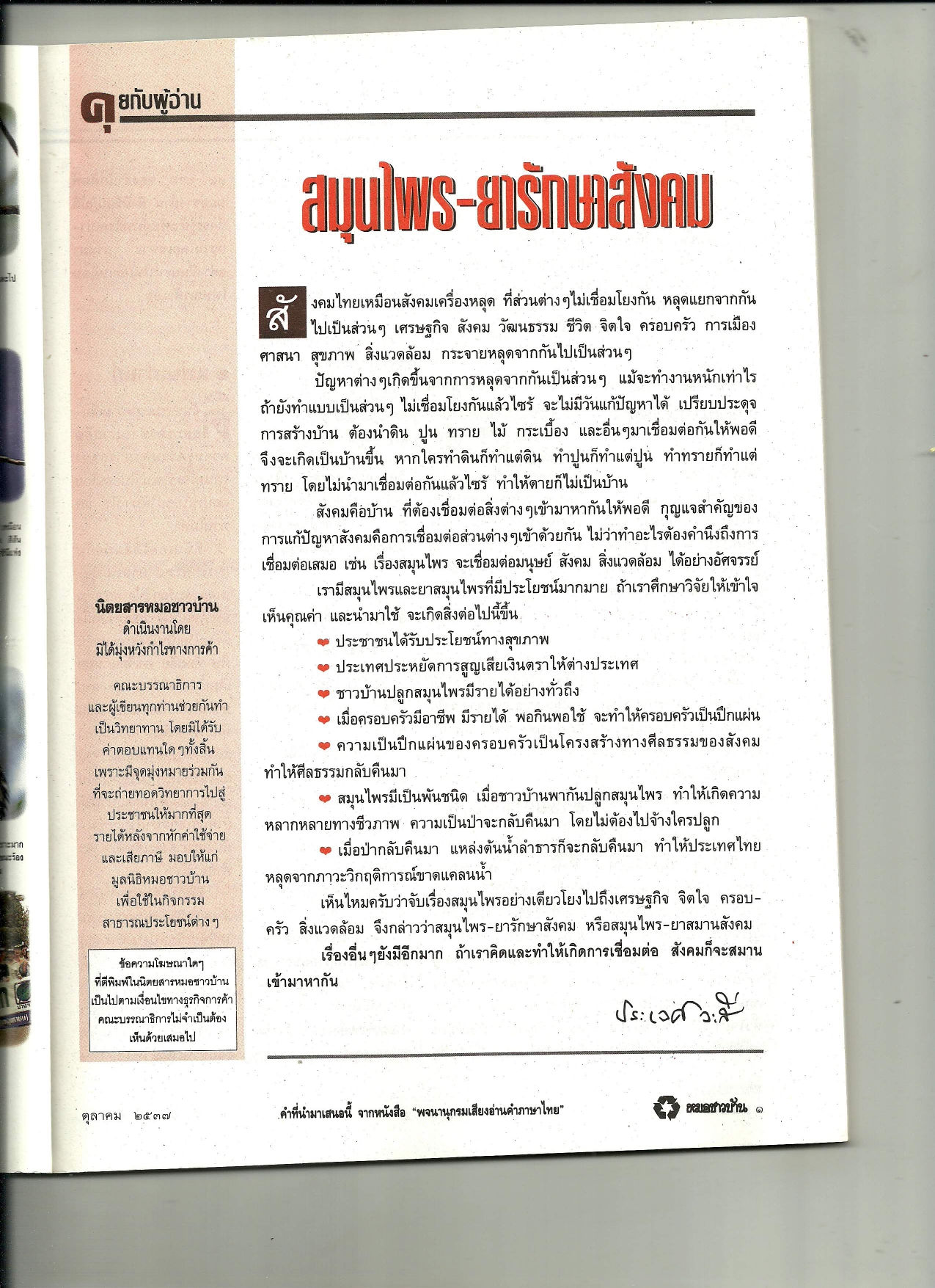 คุยกับผู้อ่าน : สมุนไพร-ยารักษาสังคม (นิตยสารหมอชาวบ้าน ฉบับที่ 186 เดือนตุลาคม พ.ศ. 2537)