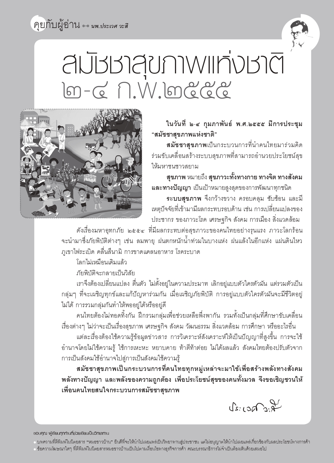คุยกับผู้อ่าน : สมัชชาสุขภาพแห่งชาติ (นิตยสารหมอชาวบ้าน ฉบับเดือนกุมภาพันธ์ พ.ศ. 2555)