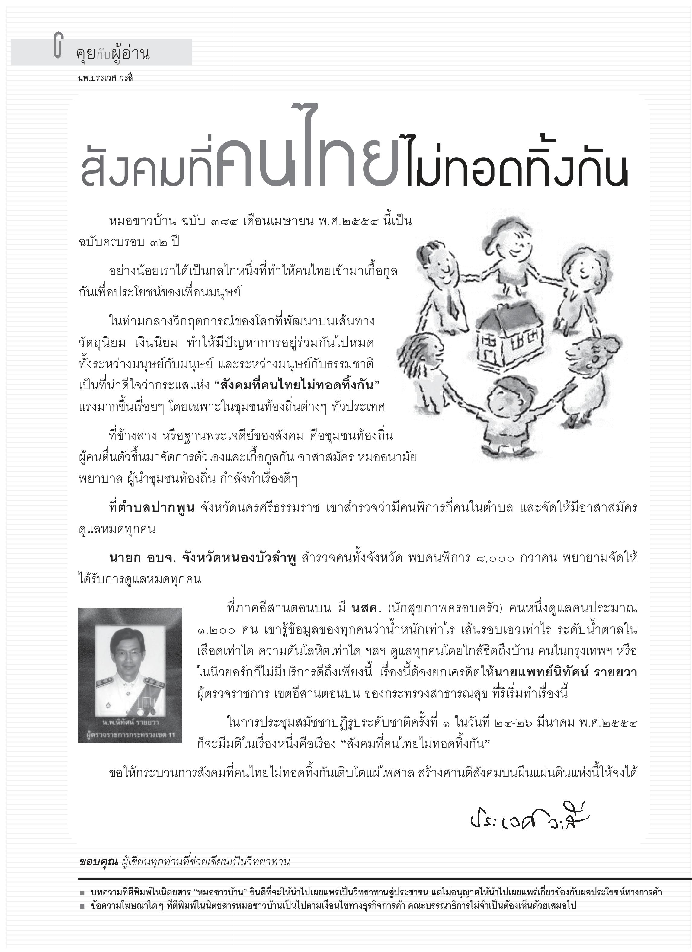 คุยกับผู้อ่าน : สังคมที่คนไทยไม่ทอดทิ้งกัน (นิตยสารหมอชาวบ้าน ฉบับที่ 384 เดือน เมษายน พ.ศ.2554 )