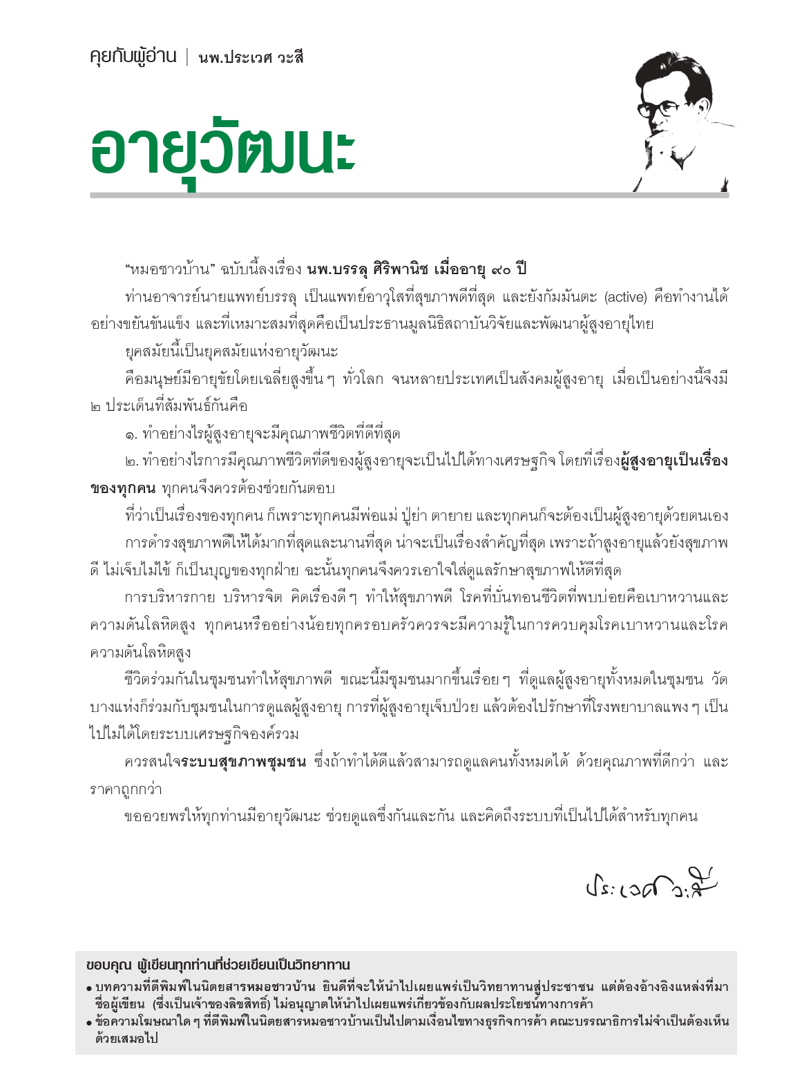 คุยกับผู้อ่าน : อายุวัฒนะ (นิตยสารหมอชาวบ้าน พ.ศ. 2558)