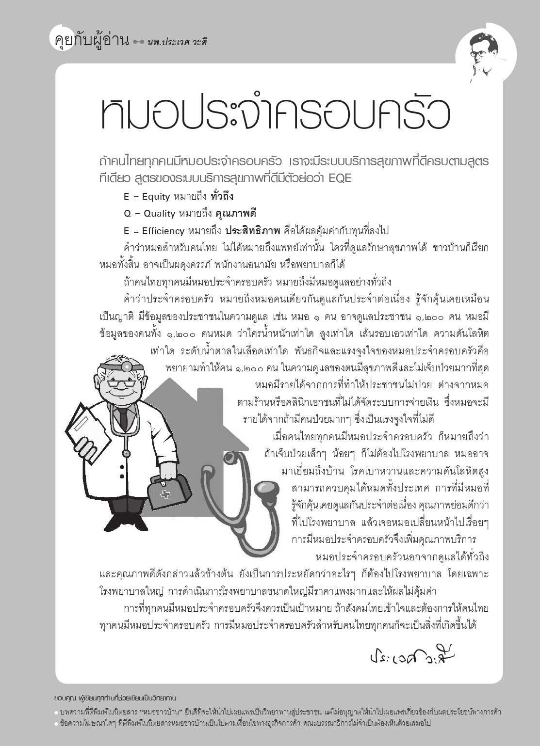 คุยกับผู้อ่าน : หมอประจำครอบครัว (นิตยสารหมอชาวบ้าน พ.ศ. 2555)