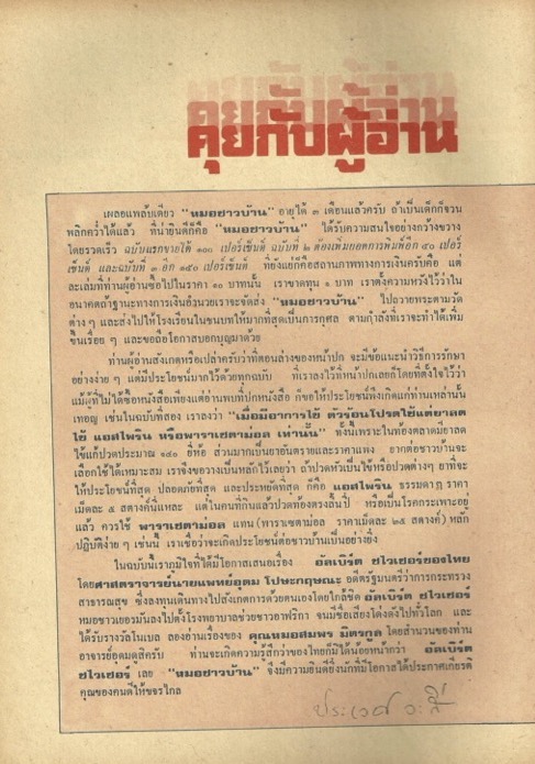 คุยกับผู้อ่าน (นิตยสารหมอชาวบ้าน ฉบับที่ 40 เดือนสิงหาคม พ.ศ. 2525)