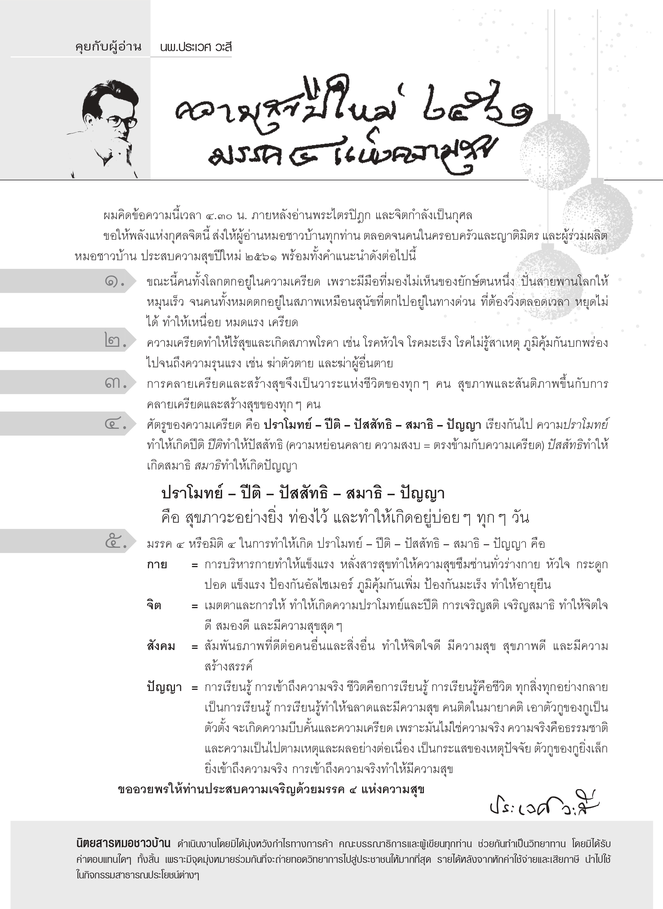 คุยกับผู้อ่าน: ความสุขปีใหม่ 2561 มรรค 4 แห่งความสุข (นิตยสารหมอชาวบ้าน ฉบับที่ 465 เดือน มกราคม พ.ศ. 2561)