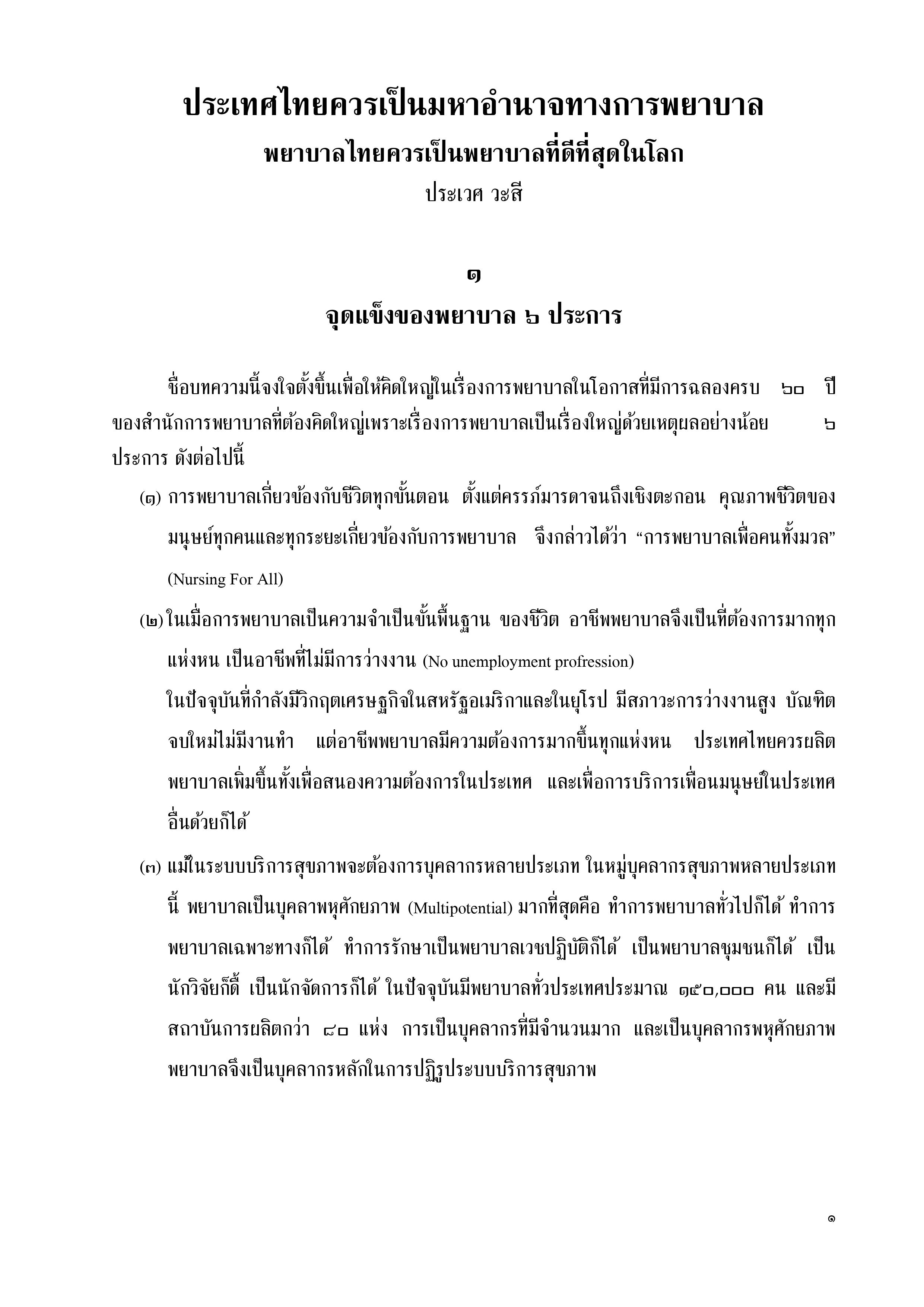 ประเทศไทยควรเป็นมหาอำนาจทางการพยาบาล พยาบาลไทยควรเป็นพยาบาลที่ดีที่สุดในโลก