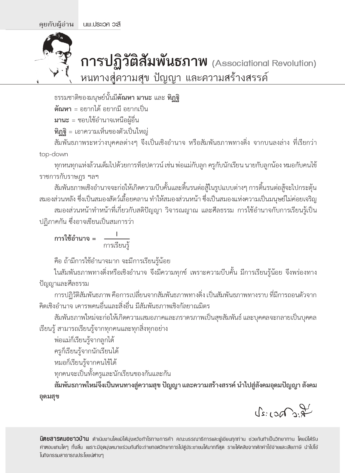 คุยกับผู้อ่าน : การปฏิวัติสัมพันธภาพ (Associational Revolution) หนทางสู่ความสุข ปัญญา และความสร้างสรรค์ (นิตยสารหมอชาวบ้าน พ.ศ. 2560)