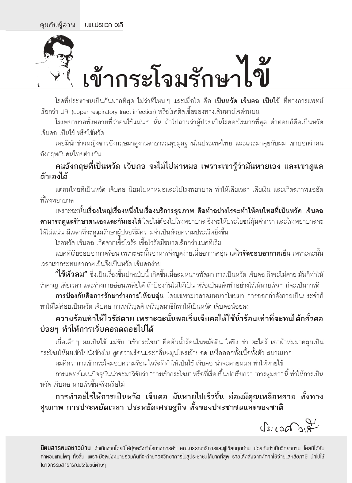 คุยกับผู้อ่าน : เข้ากระโจมรักษาไข้ (นิตยสารหมอชาวบ้าน พ.ศ. 2560)