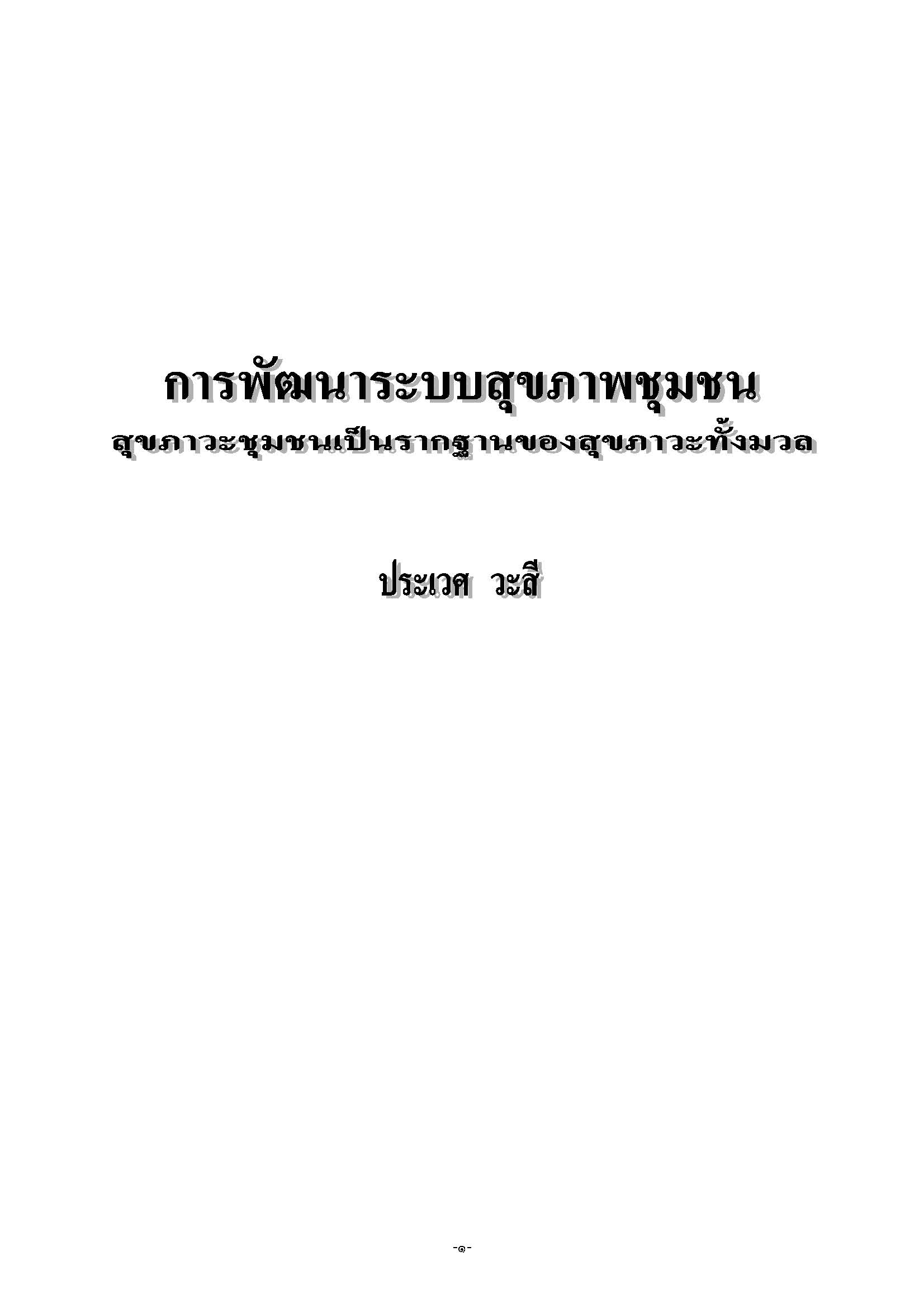 การพัฒนาระบบสุขภาพชุมชน : สุขภาวะชุมชนเป็นรากฐานของสุขภาวะทั้งมวล |