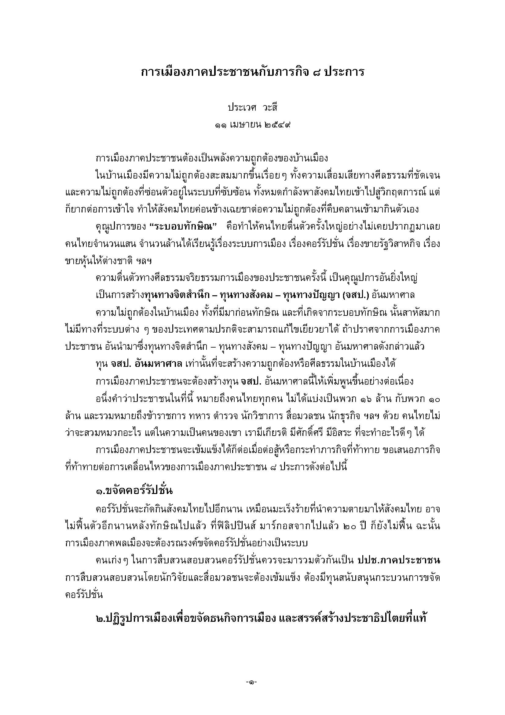 การเมืองภาคประชาชนกับภารกิจ ๘ ประการ