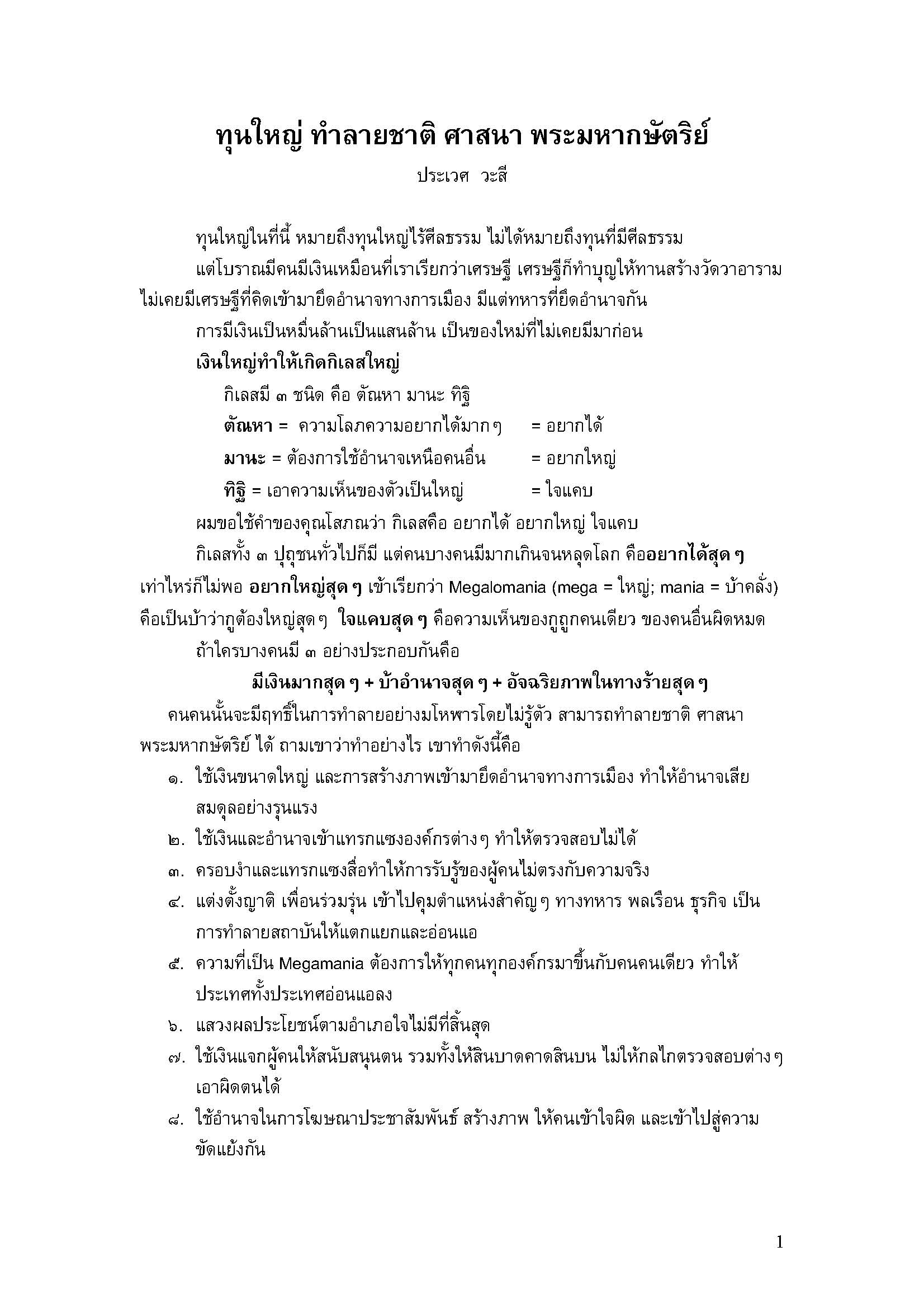 ทุนใหญ่ ทำลายชาติ ศาสนา พระมหากษัตริย์
