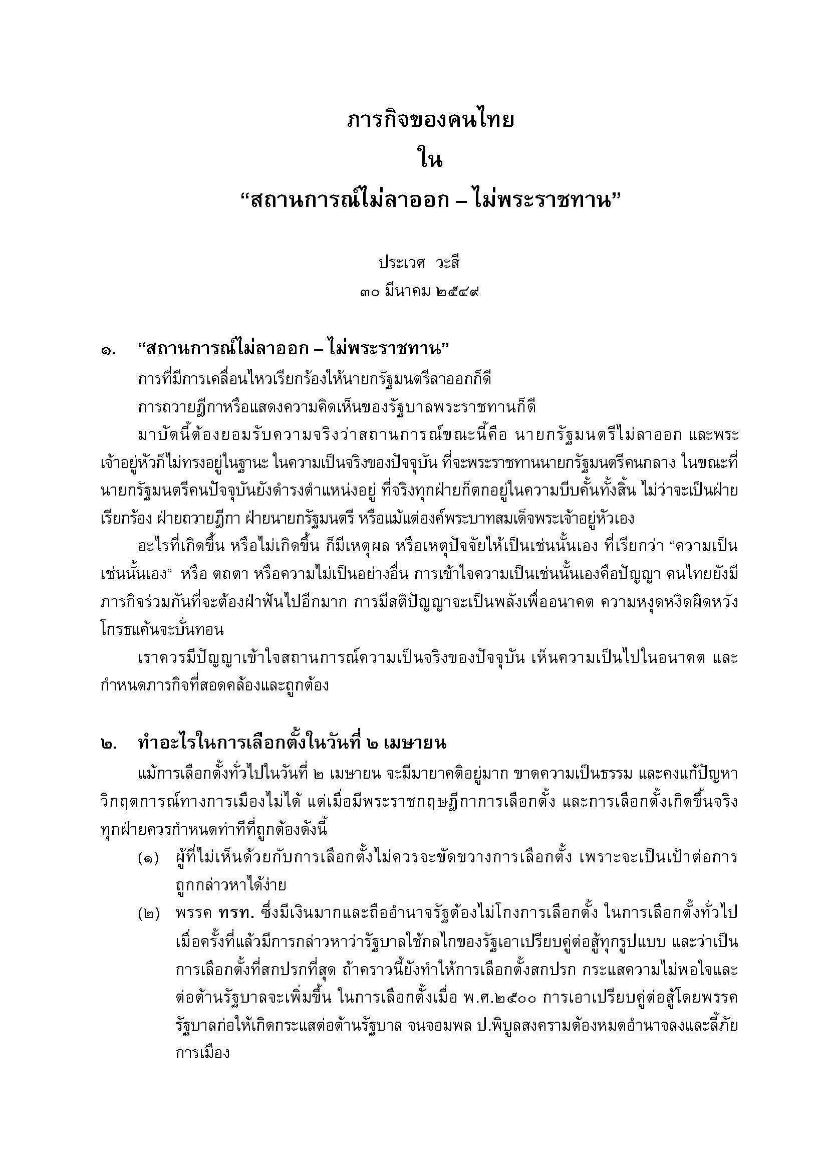 ภารกิจของคนไทย ใน สถานการณ์ไม่ลาออก-ไม่พระราชทาน_30 มี.ค. 49