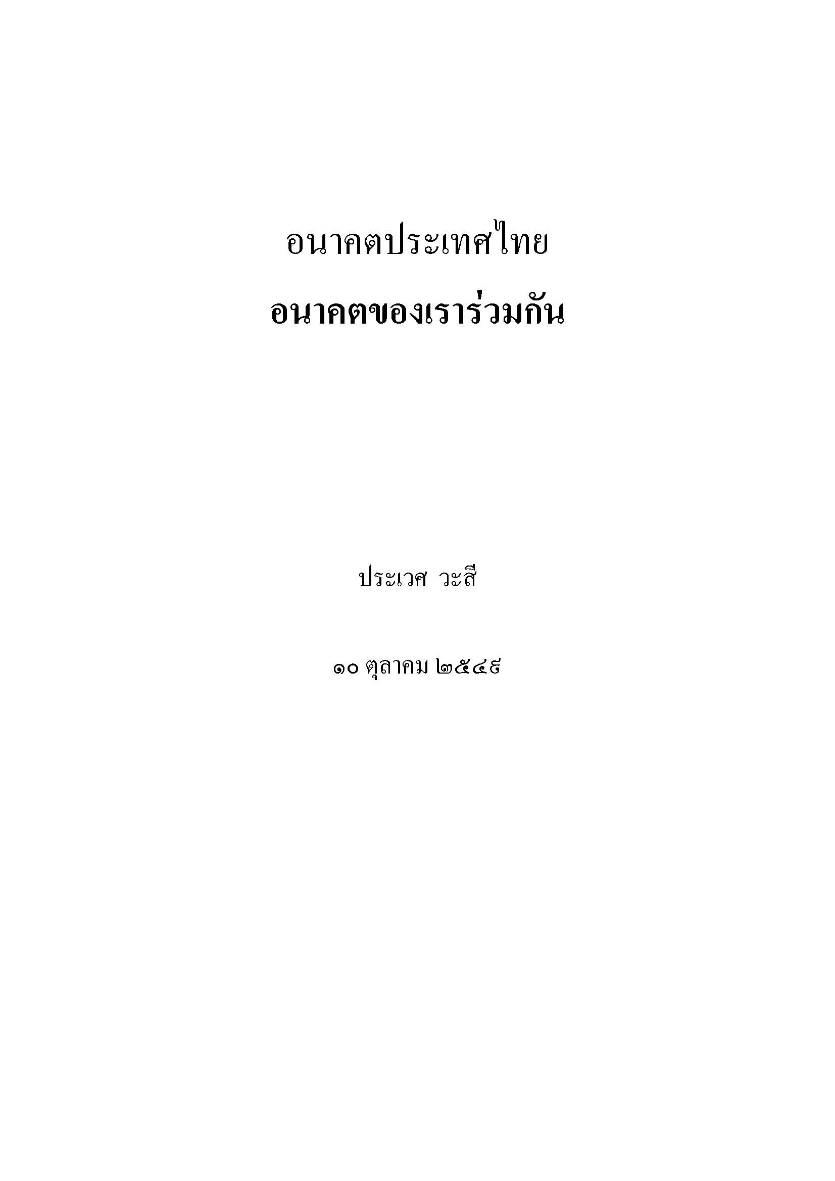 เอกสารนี้กล่าวถึงเรื่อง "อนาคตประเทศไทย อนาคตของเราร่วมกัน" โดยมีเนื้อหา ดังนี้ 1) คนไทยรวมใจกำหนดอนาคตร่วมกัน 2) เหตุปัจจัยของการร่วมกันได้