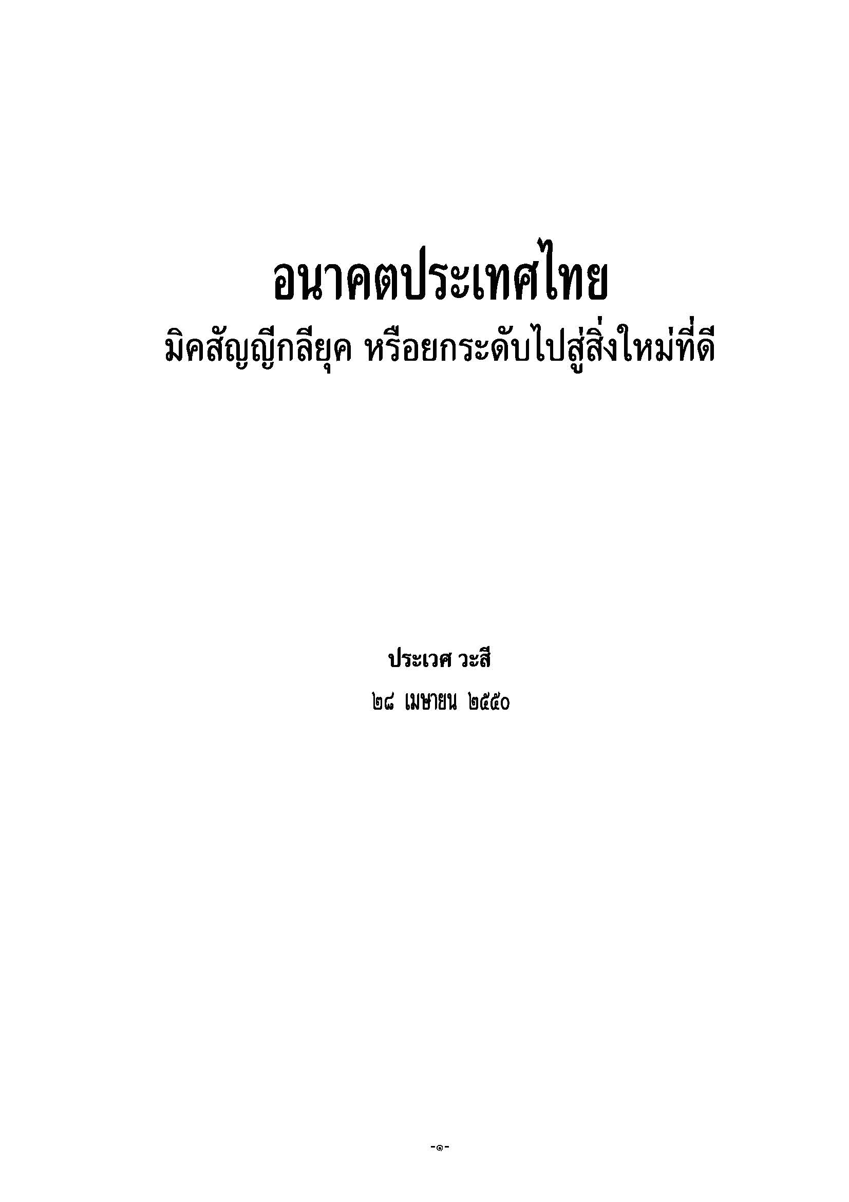 อนาคตประเทศไทย มิคสัญญีกลียุค หรือยกระดับไปสู่สิ่งใหม่ที่ดี