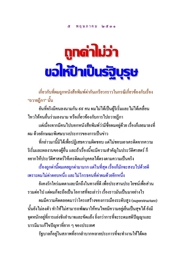 สยามรัฐสัปดาห์วิจารณ์ ฉบับวันอาทิตย์ที่ 5 พฤษภาคม 2531