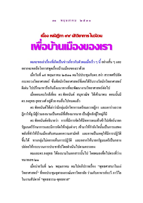 เบื้องหลังฎีกา 99 นักวิชาการในวังวน เพื่อบ้านเมืองของเรา