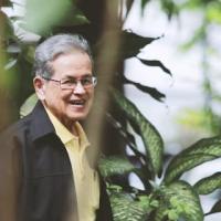 อาจารย์ประเวศ วะสี ใส่เสื้อคอปกสีเหลือง เสื้อแขนยาวสีดำ