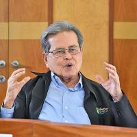 อาจารย์ประเวศ วะสี ใส่เชิ้ตสีฟ้า เสื้อแขนยาวสีดำ