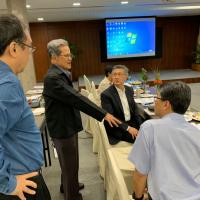 อาจารย์ประเวศ วะสี สวมเสื้อเชิ้ตสีฟ้า และสวมเสื้อแขนยาวสีดำ