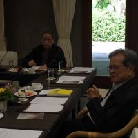 อาจารย์ประเวศ วะสี สวมเสื้อเชิ้ต และสวมเสื้อแขนยาวสีดำ