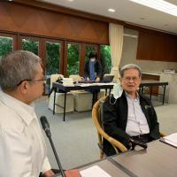 อาจารย์ประเวศ วะสี สวมเสื้อเชิ้ตสีขาว และสวมเสื้อแขนยาวสีดำ