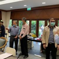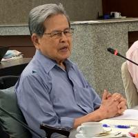 อาจารย์ประเวศ วะสี สวมเสื้อเชิ้ตแขนยาวสีฟ้าคราม