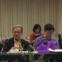 อาจารย์ประเวศ วะสี สวมเสื้อเชิ้ตสีเหลือง และสวมเสื้อแขนยาวสีดำ