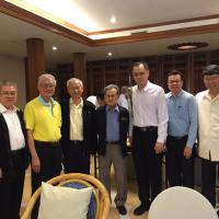อาจารย์ประเวศ วะสี สวมเสื้อเชิ้ตสีฟ้า และสวมเสื้อแขนยาวสีดำ