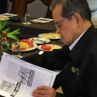 อาจารย์ประเวศ วะสี สวมเสื้อเชิ้ตสีขาว และสวมเสื้อแขนยาวสีดำ