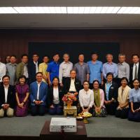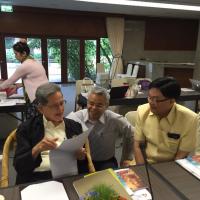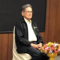 อาจารย์ประเวศ วะสี สวมเสื้อเชิ้ตสีเหลืองอ่อน และสวมเสื้อแขนยาวสีดำ โดยมีกิจกรรมรดน้ำดำหัวอาจารย์ประเวศ เพื่อขอพรด้วย