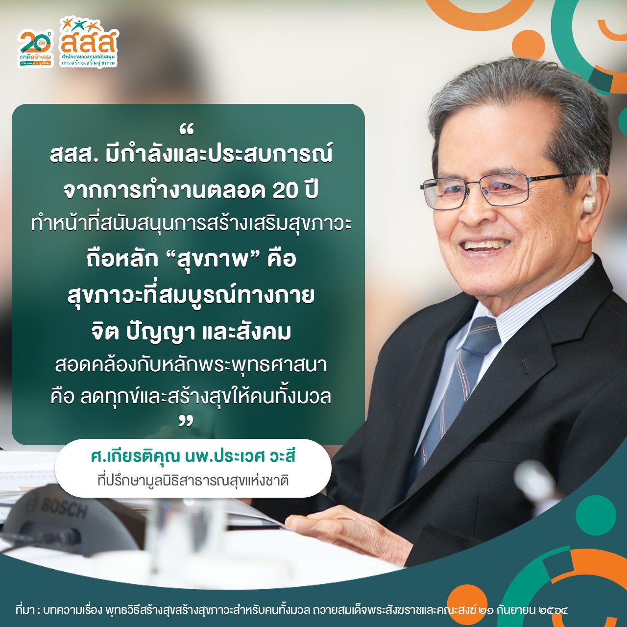 20 ปี ของ สำนักงานกองทุนสนับสนุนการสร้างเสริมสุขภาพ [สสส.]