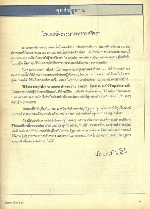 คุยกับผู้อ่าน : โรคเอดส์จะระบาดเพราะอวิชชา (นิตยสารหมอชาวบ้าน ฉบับที่ 111 เดือนกรกฎาคม พ.ศ. 2531)