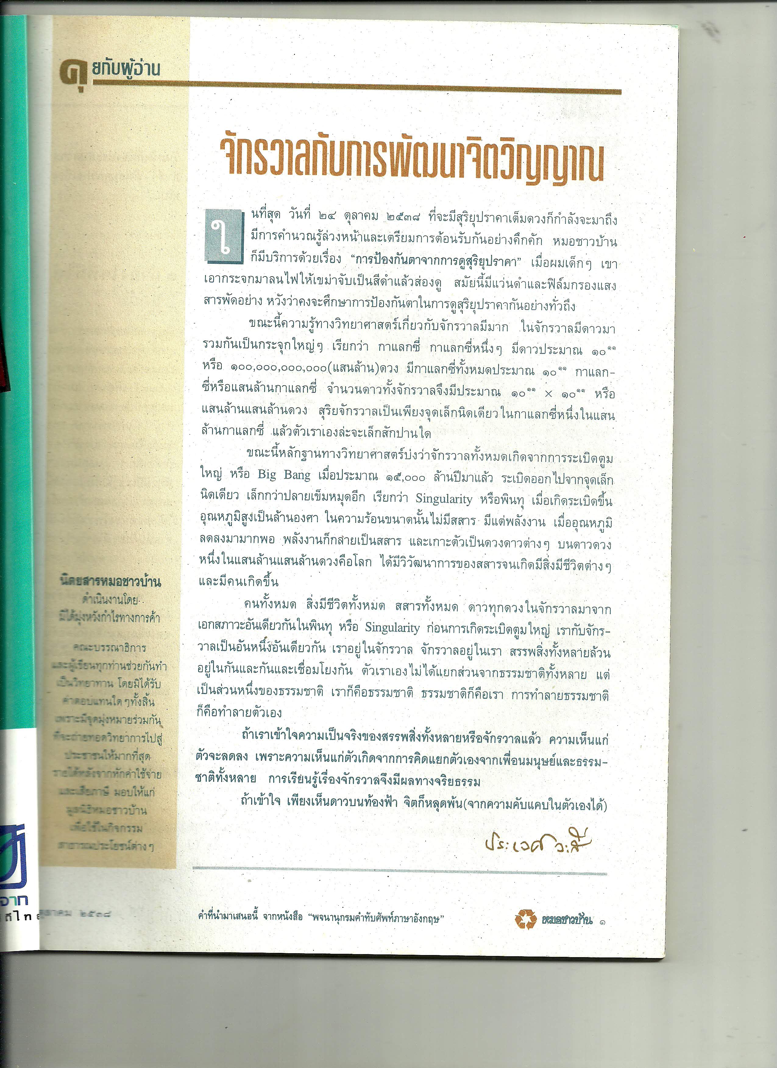 คุยกับผู้อ่าน : จักรวาลกับการพัฒนาจิตวิญญาณ (นิตยสารหมอชาวบ้าน ฉบับที่ 198 เดือนตุลาคม พ.ศ. 2538)