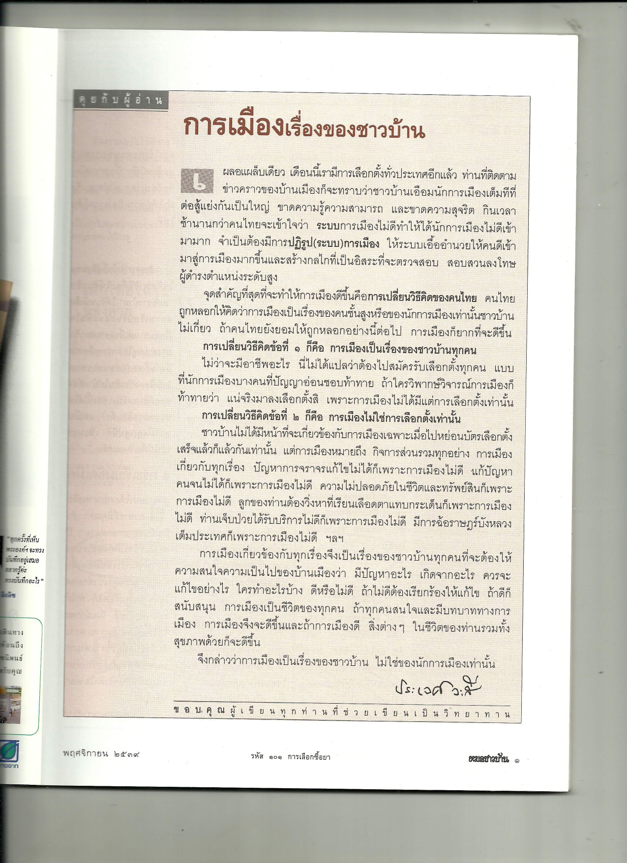 คุยกับผู้อ่าน : การเมืองเรื่องของชาวบ้าน (นิตยสารหมอชาวบ้าน ฉบับที่ 211 เดือนพฤศจิกายน พ.ศ. 2539)