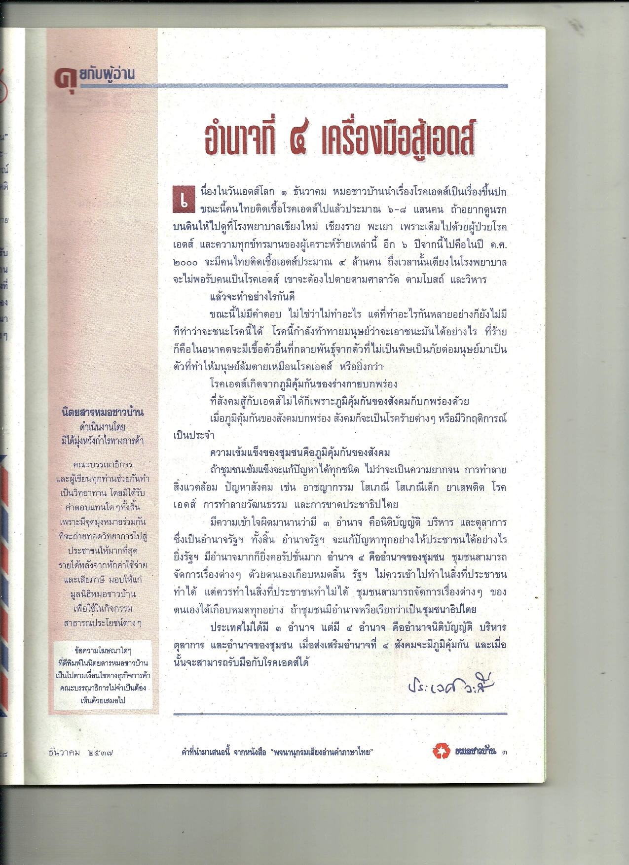 คุยกับผู้อ่าน : อำนาจที่ 4 เครื่องมือสู้เอดส์ (นิตยสารหมอชาวบ้าน ฉบับที่ 188 เดือนธันวาคม พ.ศ. 2537)
