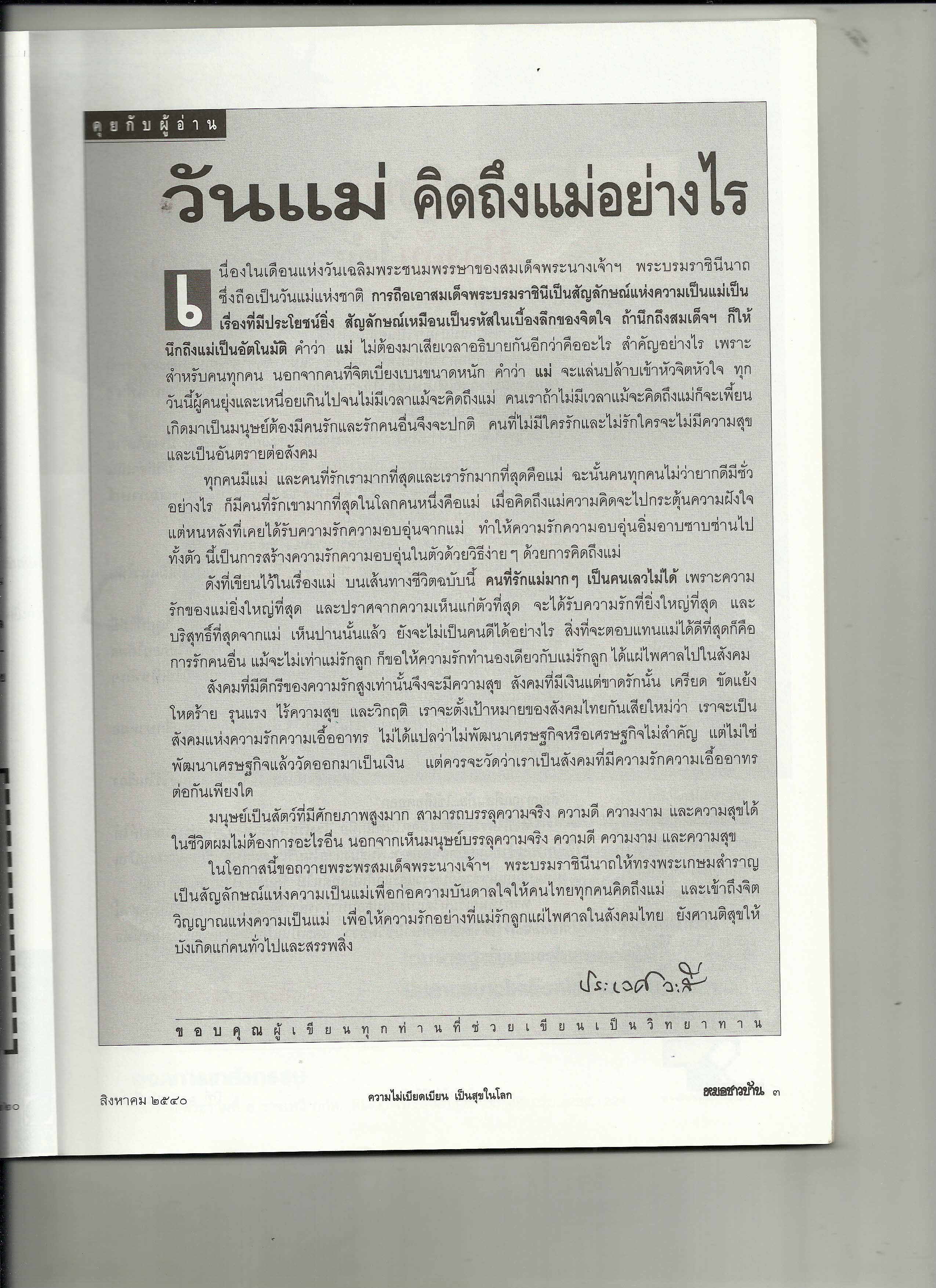 คุยกับผู้อ่าน : วันแม่ คิดถึงแม่อย่างไร (นิตยสารหมอชาวบ้าน ฉบับที่ 220 เดือนสิงหาคม พ.ศ. 2540)