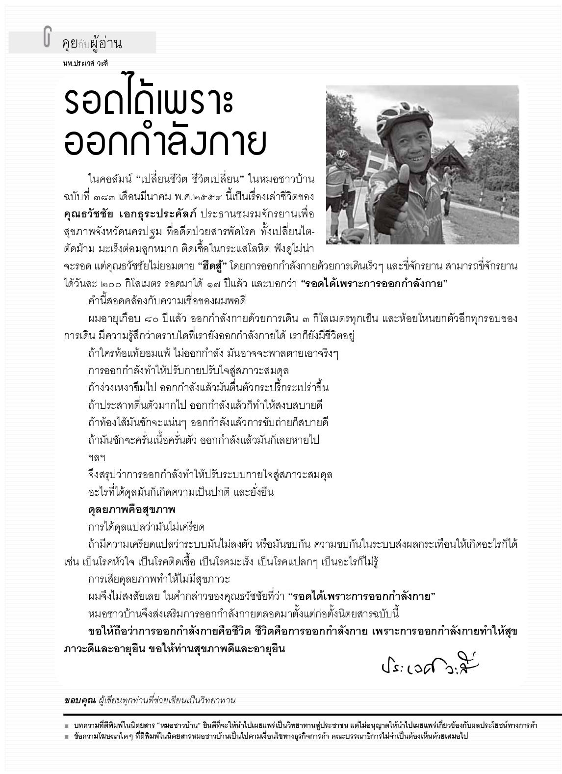 Part of คุยกับผู้อ่าน : รอดได้เพราะออกกำลังกาย (นิตยสารหมอชาวบ้าน ฉบับที่ 383 เดือนมีนาคม พ.ศ. 2554)