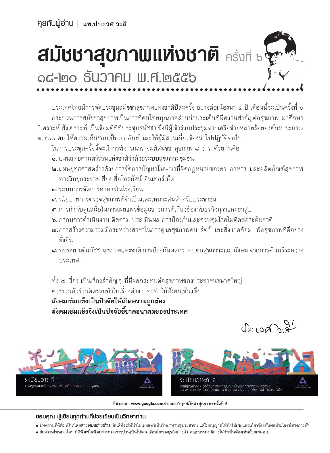 Part of คุยกับผู้อ่าน : ศ.นพ. ประเวศ วะสี สมัชชาสุขภาพแห่งชาติ ครั้งที่ 6 (นิตยสารหมอชาวบ้าน ฉบับที่ 416 เดือนธันวาคม พ.ศ. 2556)