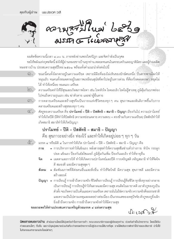 Part of คุยกับผู้อ่าน: ความสุขปีใหม่ 2561 มรรค 4 แห่งความสุข (นิตยสารหมอชาวบ้าน ฉบับที่ 465 เดือน มกราคม พ.ศ. 2561)