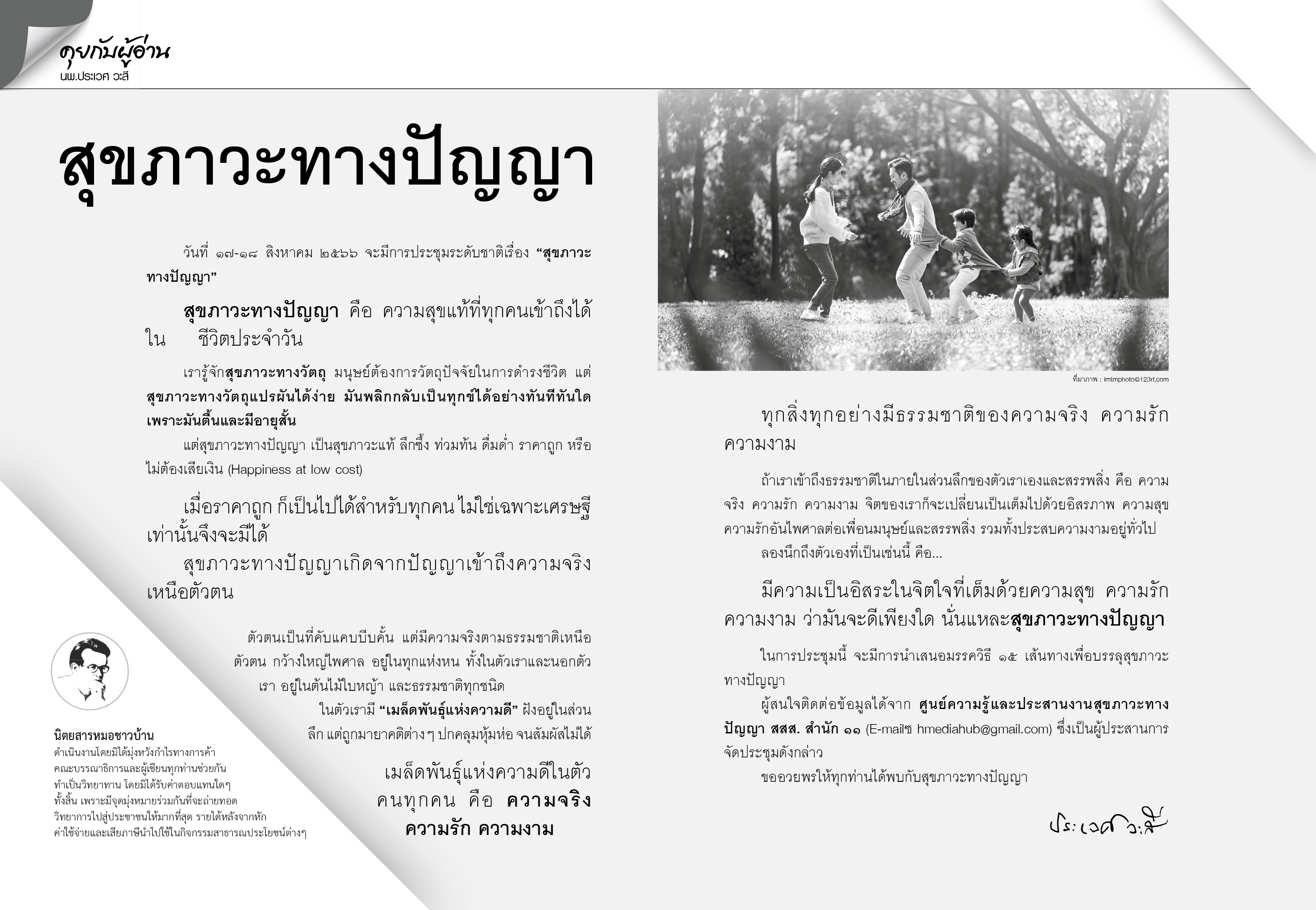 Part of คุยกับผู้อ่าน : สุขภาวะทางปัญญา ( นิตยสารหมอชาวบ้าน ฉบับที่ 532 เดือน สิงหาคม พ.ศ.2566)