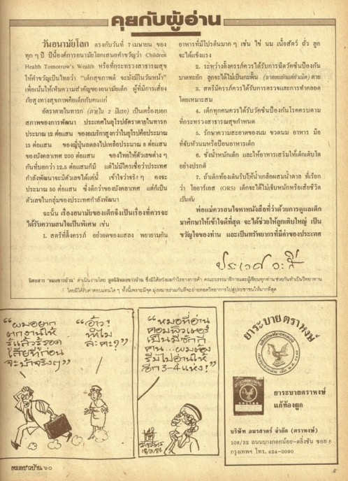คุยกับผู้อ่าน (นิตยสารหมอชาวบ้าน ฉบับที่ 60 เดือนเมษายน พ.ศ. 2527)