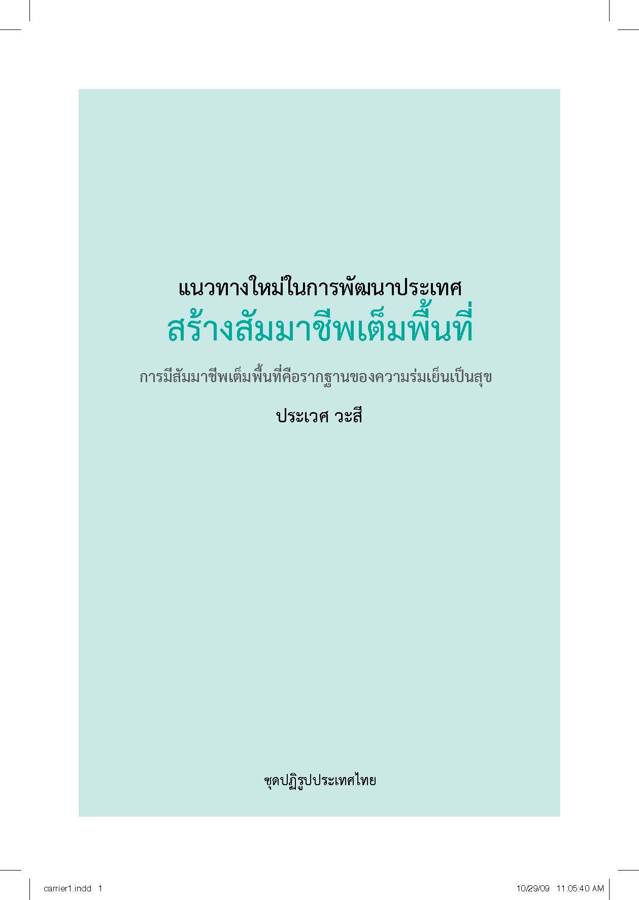 แนวทางใหม่ในการพัฒนาประเทศ สร้างสัมมาชีพเต็มพื้นที่ การมีสัมมาชีพเต็มพื้นที่คือรากฐานของความร่มเย็นเป็นสุข
