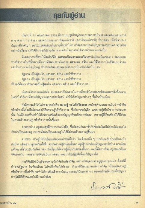 คุยกับผู้อ่าน : วัฒนธรรมแสวงหาความรู้ (นิตยสารหมอชาวบ้าน ฉบับที่ 123 เดือนกรกฎาคม พ.ศ. 2532)