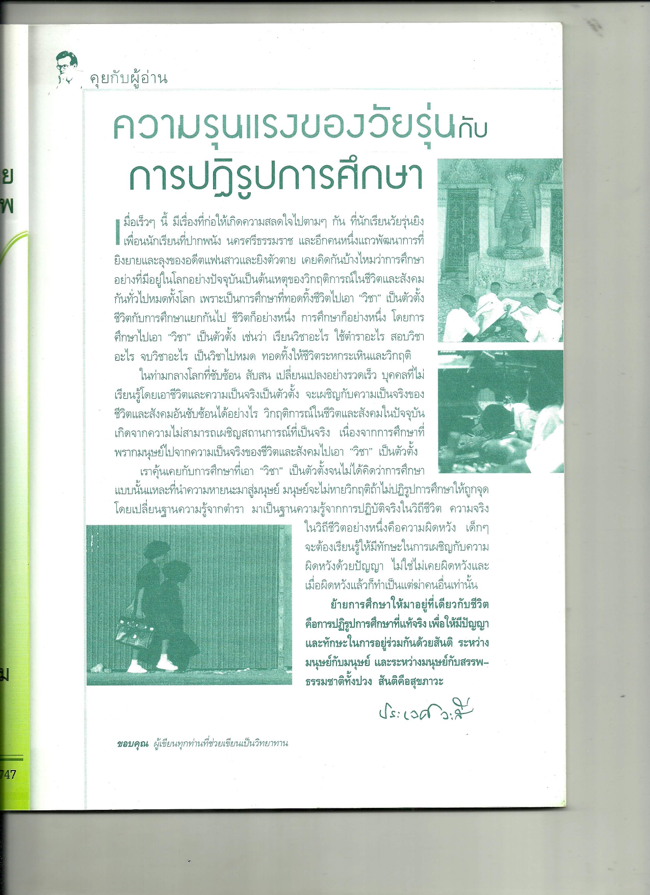 คุยกับผู้อ่าน : ความรุนแรงของวัยรุ่นกับการปฏิรูปการศึกษา (นิตยสารหมอชาวบ้าน พ.ศ. 2546)