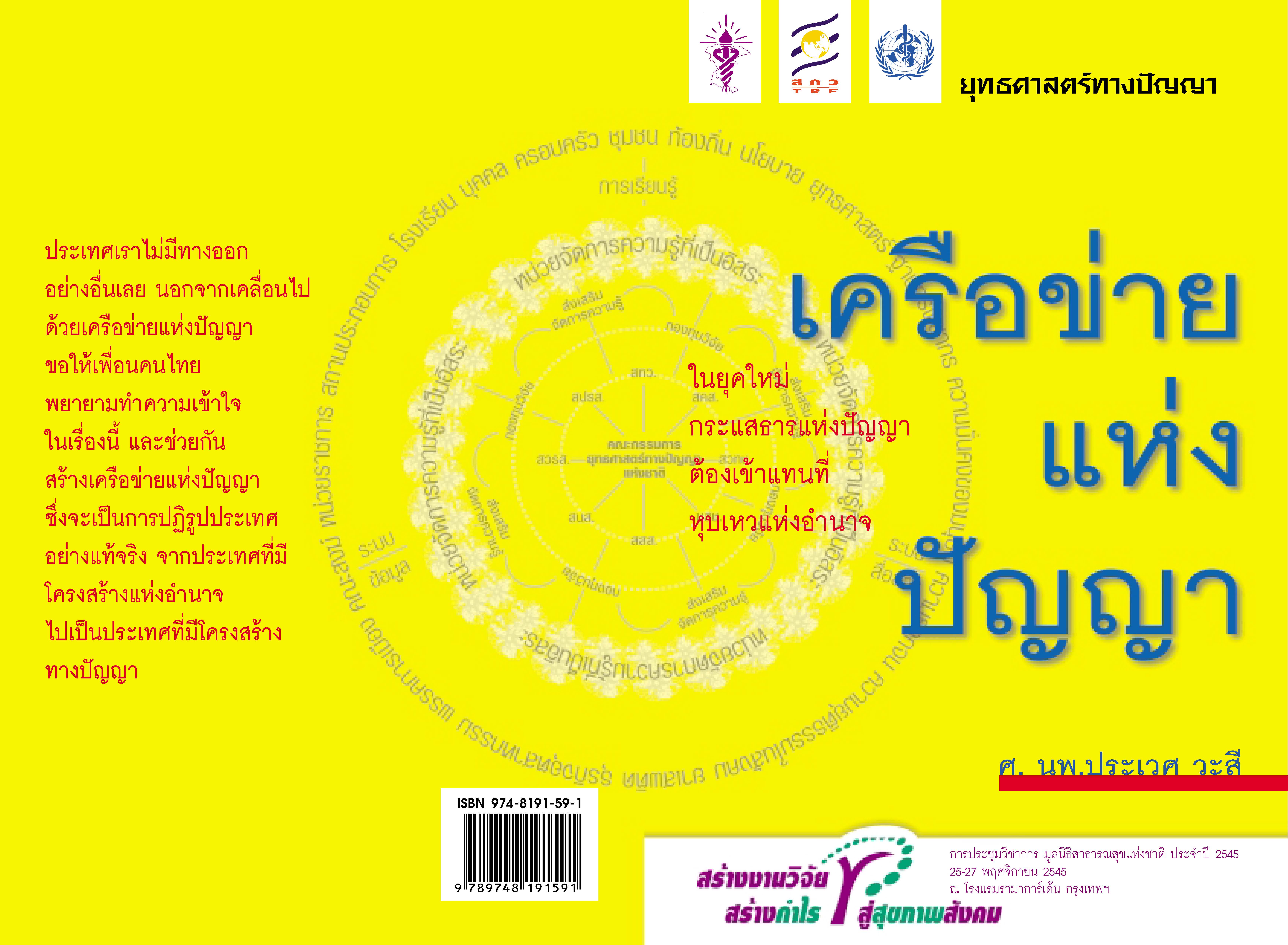 หนังสือเล่มนี้ ผู้เขียนกล่าวถึงเครือข่ายแห่งปัญญา โดยมีเนื้อหาดังนี้ 1) การรู้ทำให้อยู่รอด 2) ตัวอย่างของระบบปัญญาที่ดีที่สุด 3) ระบบอำนาจ VS ระบบปัญญา 4) ปรับวัฒนธรรม จากวัฒนธรรมอำนาจสู่วัฒนธรรมความรู้ 5) สังคมเรียนรู้ และการจัดการความรู้ 6) การจัดการความรู้ในฐานะยุทธศาสตร์ชาติ 7) หน่วยจัดการความรู้ที่เป็นอิสระ 8) ระบบการวิจัย 9) เครือข่ายแห่งปัญญา -