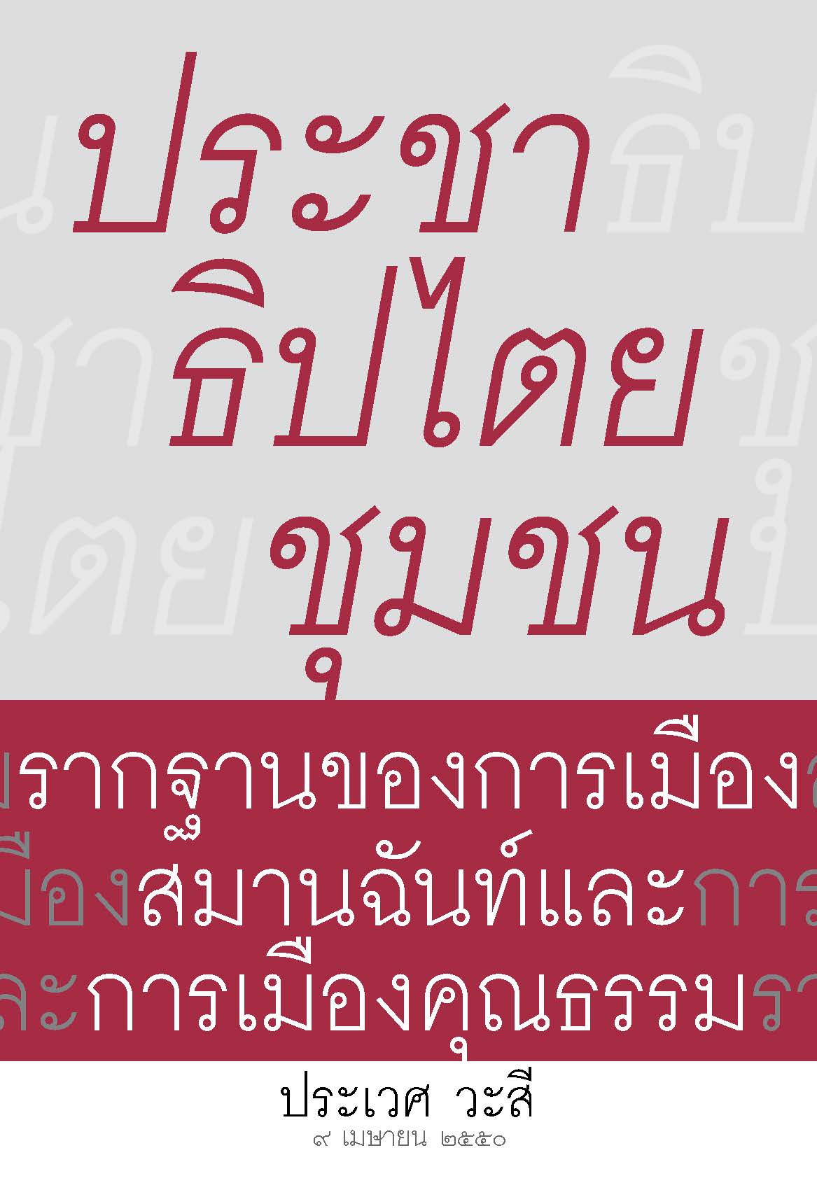 หนังสือเล่มนี้ กล่าวถึงประชาธิปไตยชุมชน รากฐานของการเมืองสมานฉันท์และการเมืองคุณธรรม โดยมีเนื้อหาดังนี้ 1) มายาคติพาวิกฤต 2) ความจริง 4 ประการ 3) พระเจดีต้องสร้างจากฐาน 4) ประชาธิปไตยชุมชน 5) ประชาธิปไตยชุมชน แก้ความยากจนอย่างเด็ดขาดและถาวร 6) การสร้างสัมมาชีพเต็มพื้นที่: รากฐานของความร่มเย็นเป็นสุข 7) สิทธิชุมชนคือประชาธิปไตยชุมชน 8) ระบบความยุติธรรมชุมชน 9) ประชาธิปไตยชุมชน ฐานของการเมืองสมานฉันท์ 10) กุญแจของประเทศไทย: สร้างฐานล่างให้แข็งแรงและเชื่อมข้างบนกับข้างล่าง 11) สภาผู้นำชุมชน 12) พรบ. ประชาธิปไตยชุมชน -
