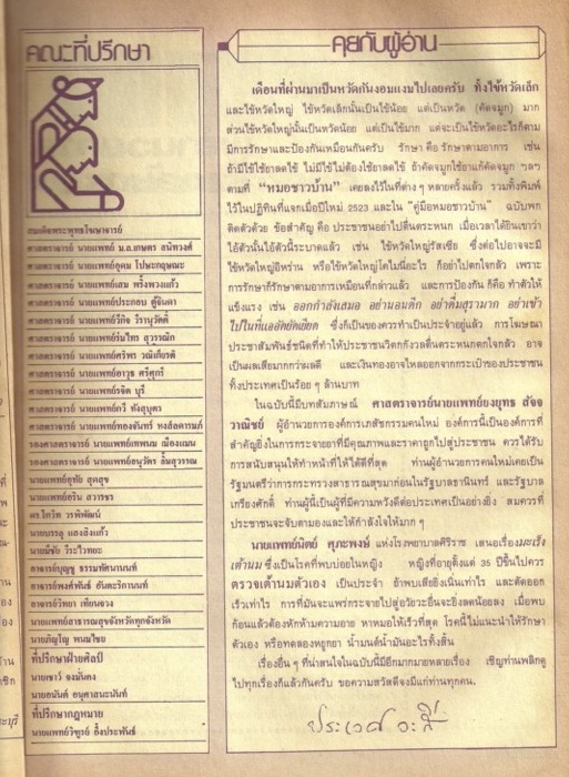คุยกับผู้อ่าน (นิตยสารหมอชาวบ้าน ฉบับที่ 30 เดือนตุลาคม พ.ศ. 2524)